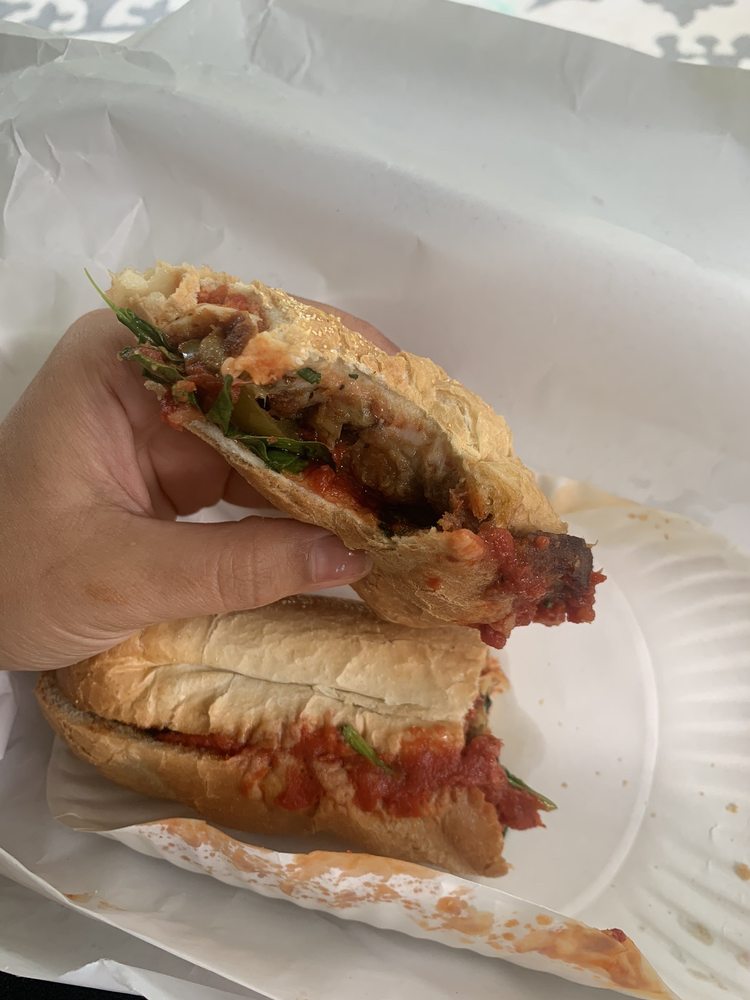 All meat meatballs roasted in marinara sauce and topped with shaved aged Parmesan. Served with grilled country bread.